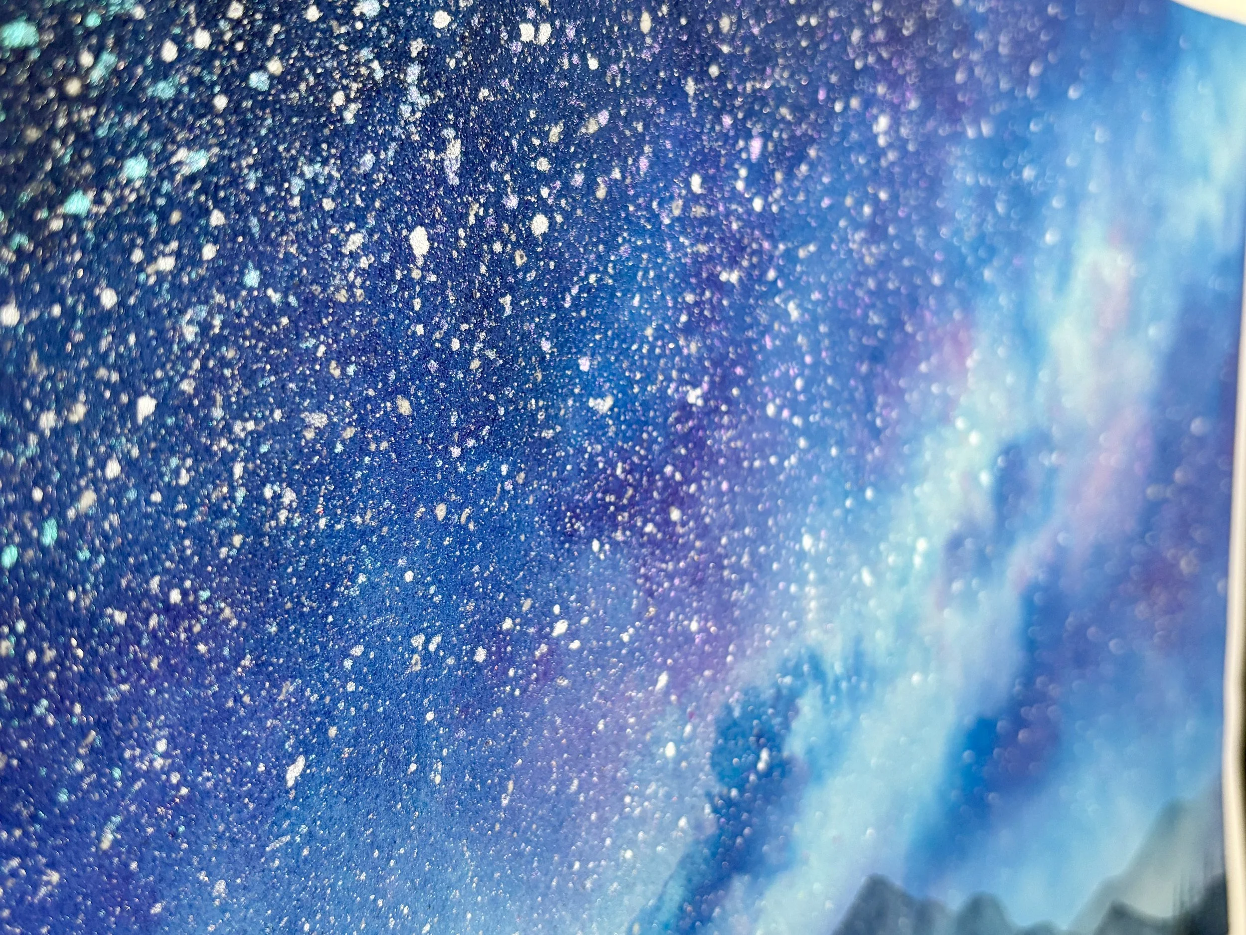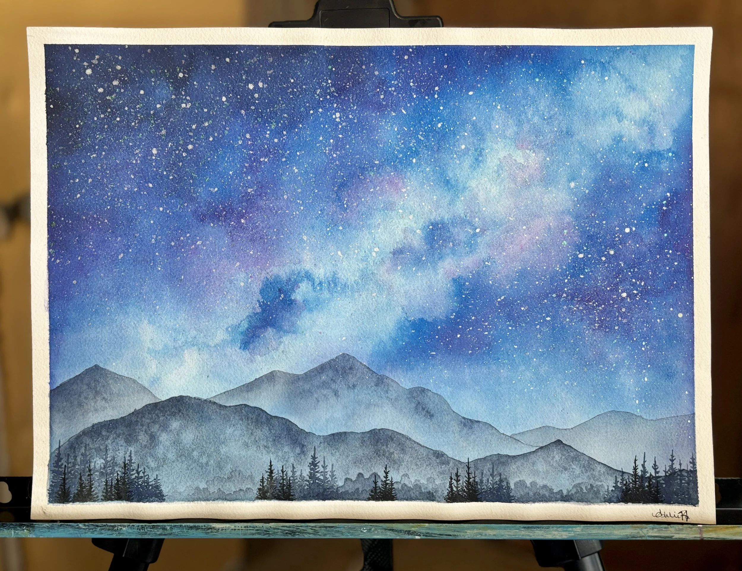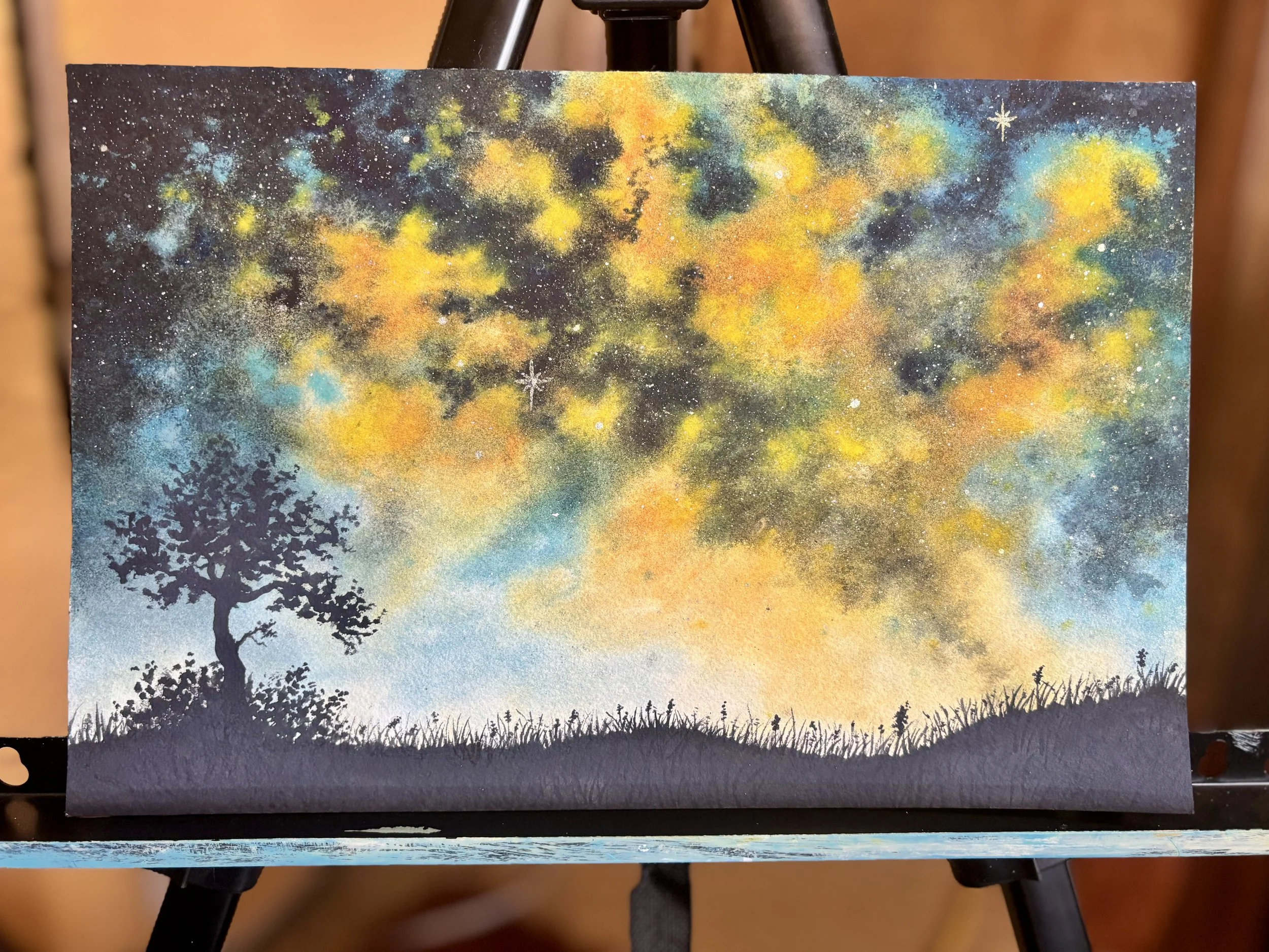 Childhood - Watercolor on cotton, 9"x12" $180.00 Autumnal Mountain - Watercolor on cotton, 8"x10" $140.00 Cotton Candy Nebula - Watercolor on cotton, 9"x12" $175.00 Look at the Stars - Watercolor on cotton, 10"x14" $200.00 A Lone Tree - Watercolor on Cotton 8"x12" $160.00